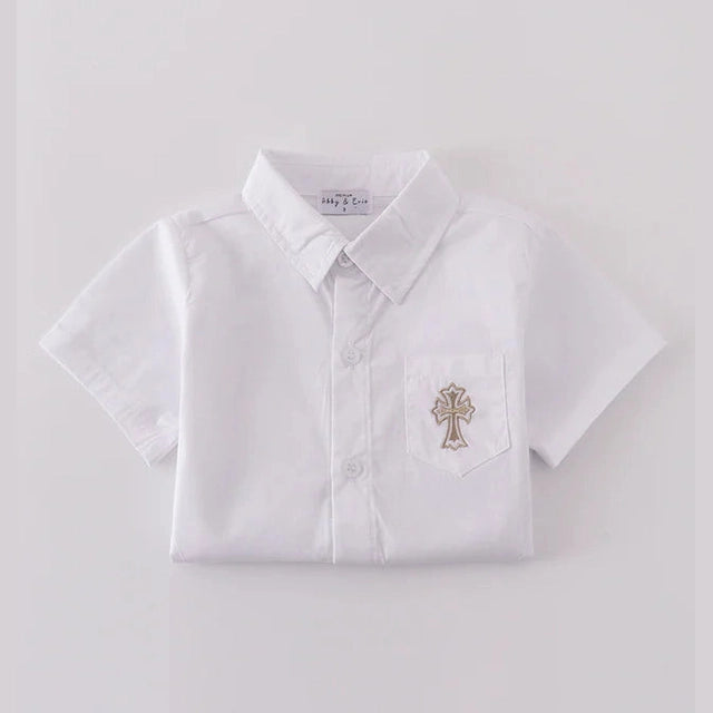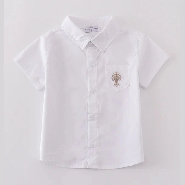 Blue Easter Cross Hand-Smocked Boy Top HS240931 Blue Easter Cross Hand-Smocked Boy Top HS240931