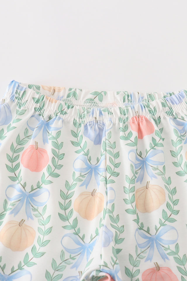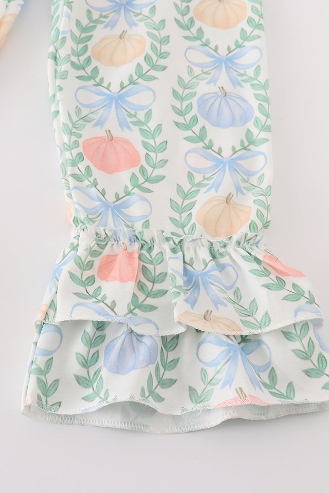 Abby & Evie Blue Pumpkin Embroidery Girl Set Girl Ruffle Pants Set 120931