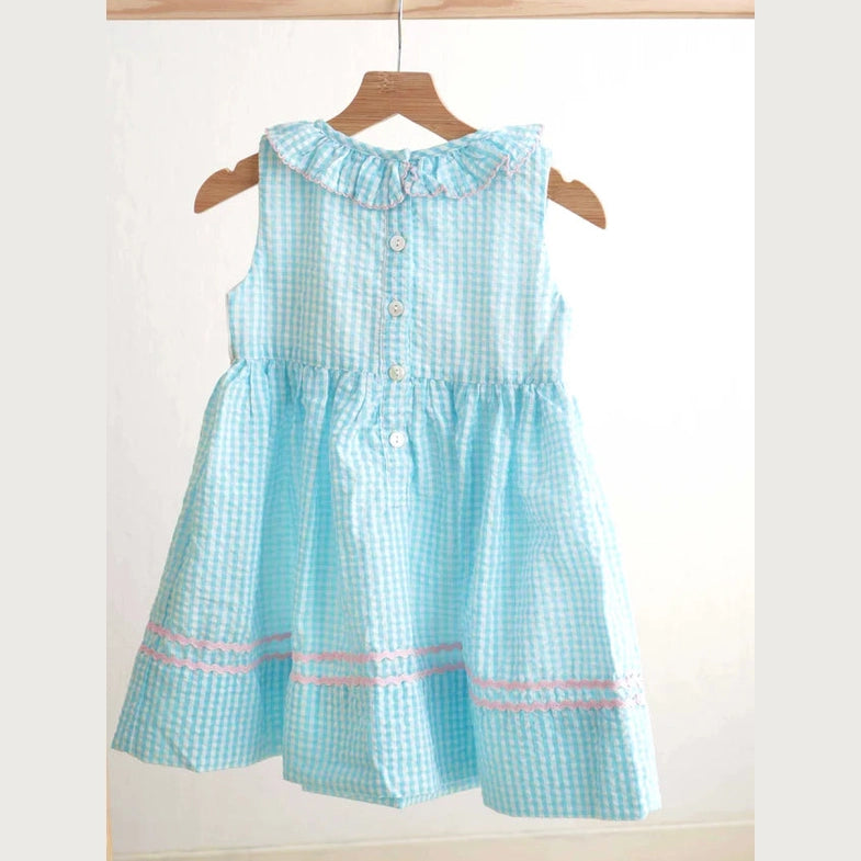 Hop into spring with our adorable Blue Easter Bunny Egg dress! This charming gingham seersucker dress features a playful French knot design, bringing to life the whimsical Easter bunny. Perfect for your little girl, this dress will have her hopping with joy all season long.