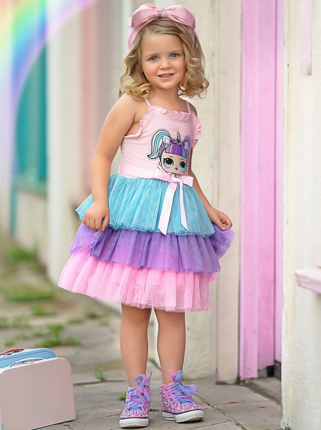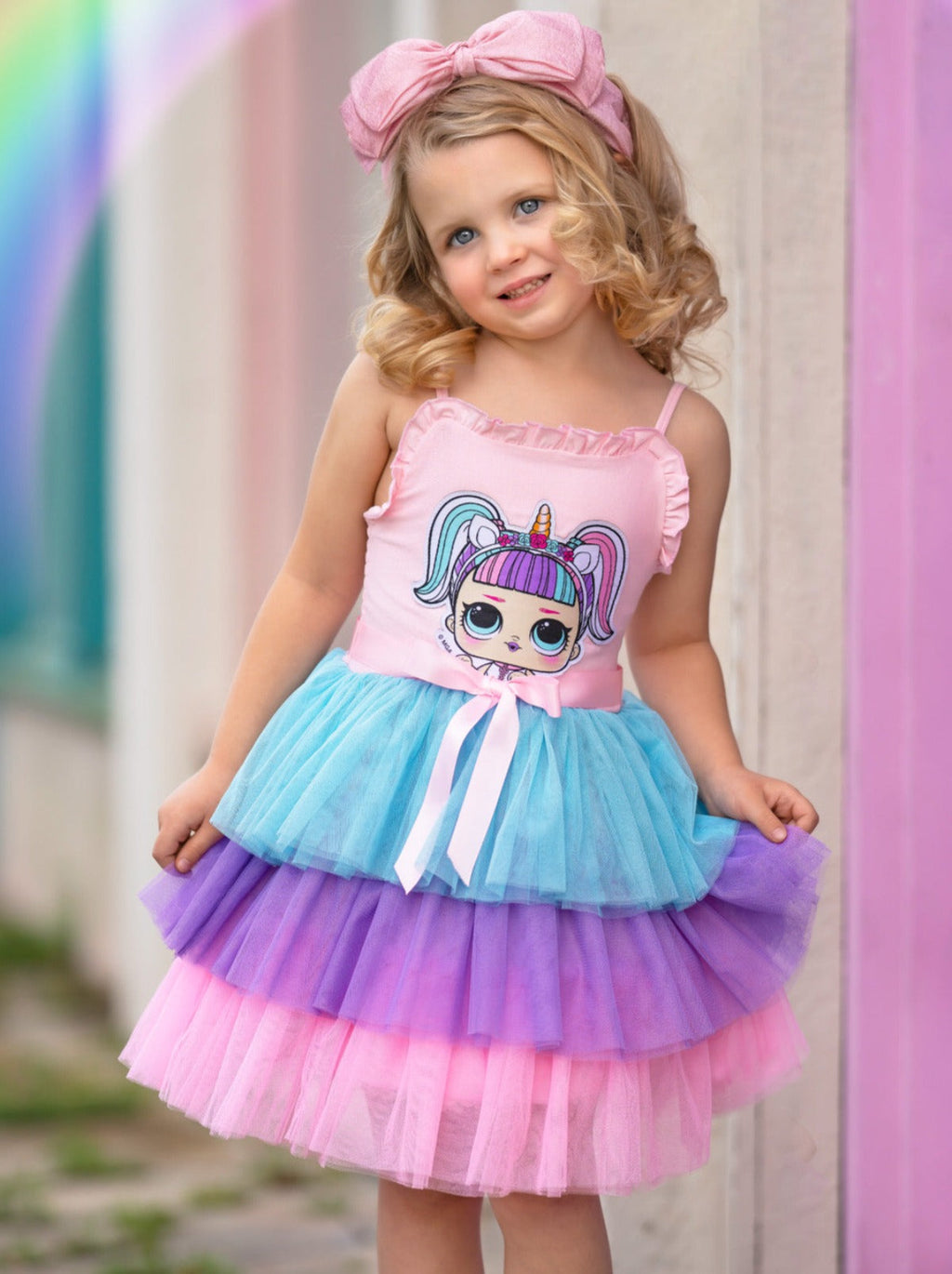 - Look precious in pastel with our L.O.L. SURPRISE!™ Unicorn tiered pastel dress perfect for spring or summer! Cool, lightweight, and a stunning addition to a day of play, your little girl will love the look and feel of this ultra-trendy design.