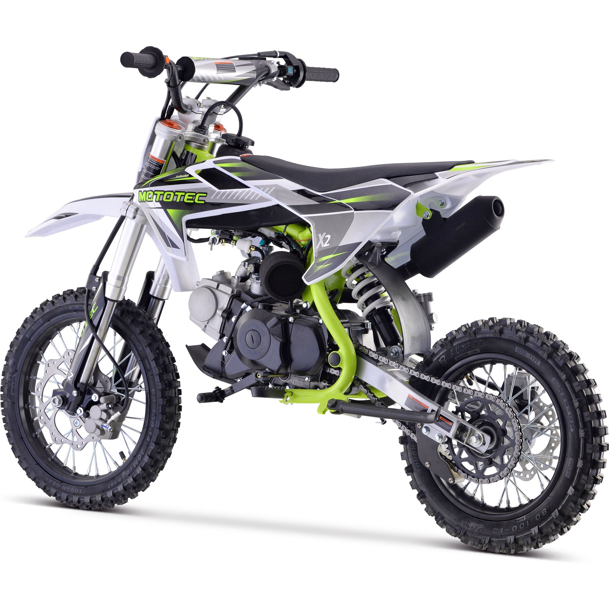 The MotoTec X2 110cc 4-Stroke Dirt Bike - The latest generation of 110cc mini bike engines are faster, torquier, more reliable and even easier to set up and start than ever before. Electric start, improved carburetor and all of the standard safety features, support and reliability that MotoTec provides.
