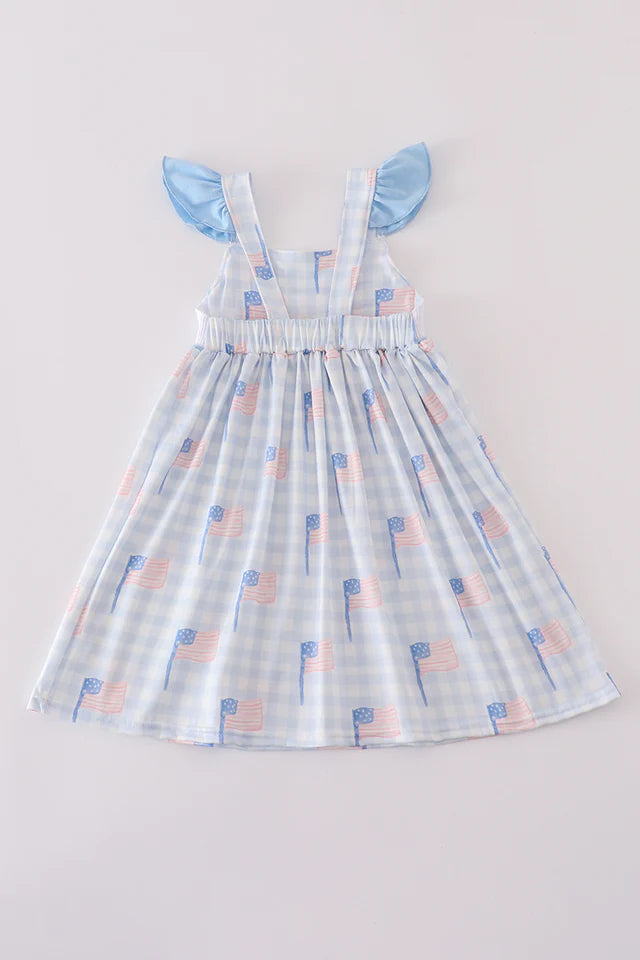 Abby & Evie Blue Flag Embroidery Smocked Gingham Dress 121926
