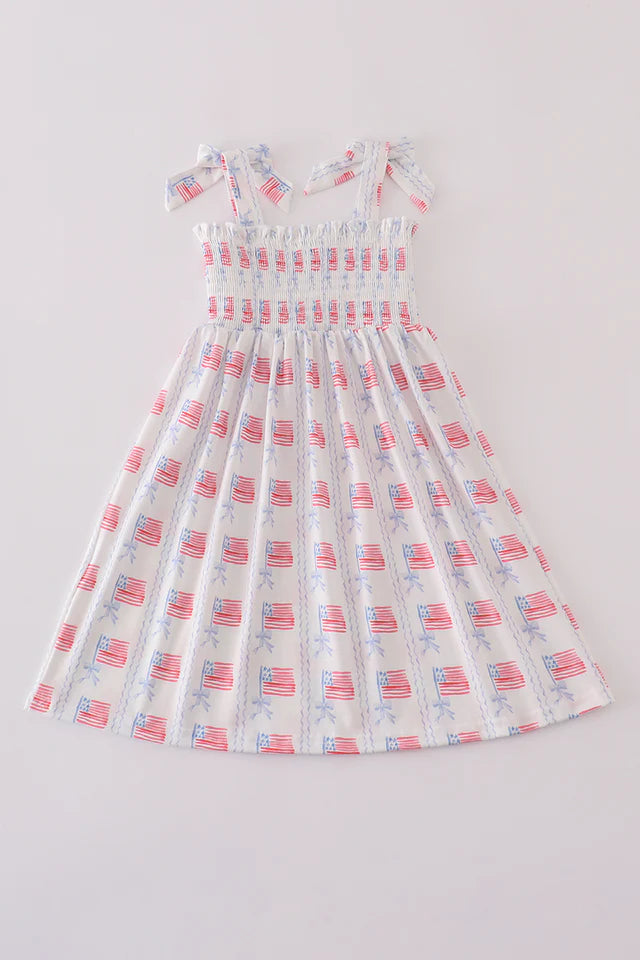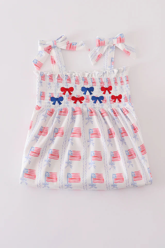 Abby & Evie Bow Embroidery Smocked Dress 121960