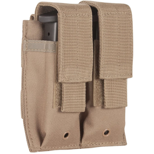 Our Dual Pistol Mag Pouch is a pistol mag pouch that accommodates two standard or high-capacity magazines and is fully modular compatible. It includes elasticized sides and fully adjustable flaps with a hook and loop system to keep your magazines in place.
