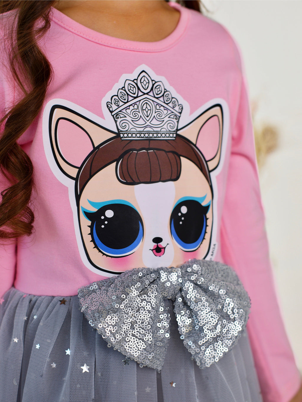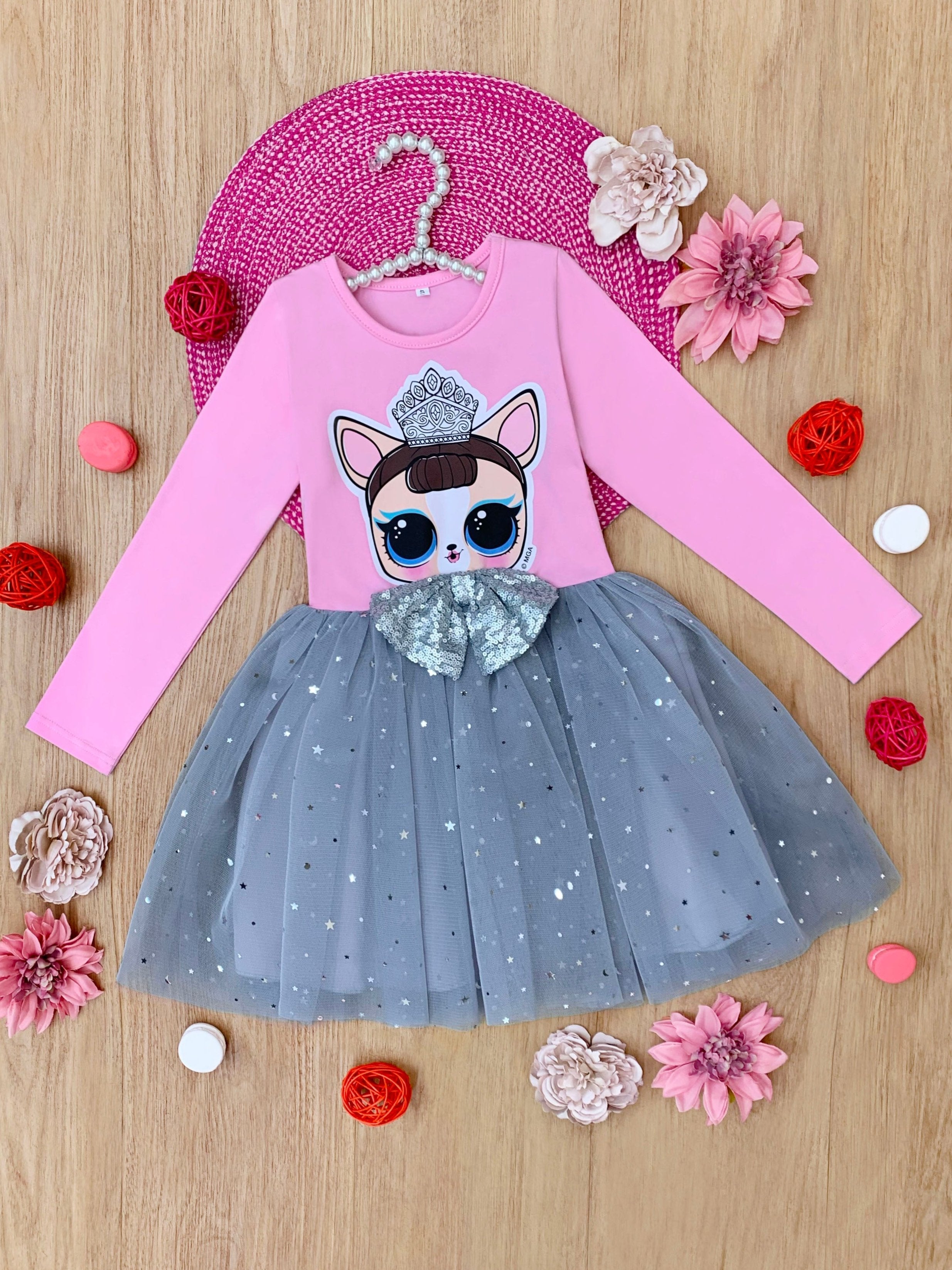 Mia Belle Girls L.O.L. SURPRISE! Miss Puppy Long Sleeved Glitter Tutu Dress