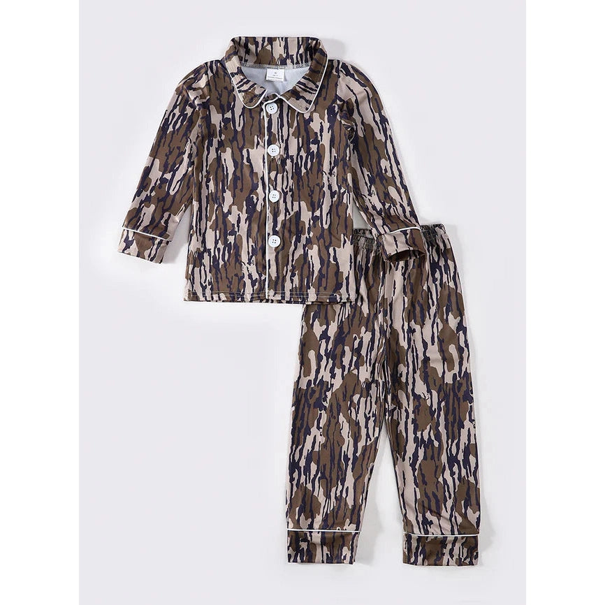 Gear up for a good night's sleep with our camouflage boy pajamas set. Perfect for adventurous dreamers, this set is both cozy and cool. Stand out from the crowd (or blend in, if that's your thing) in these unique and playful PJs. Sleep like a champ in our camo set!